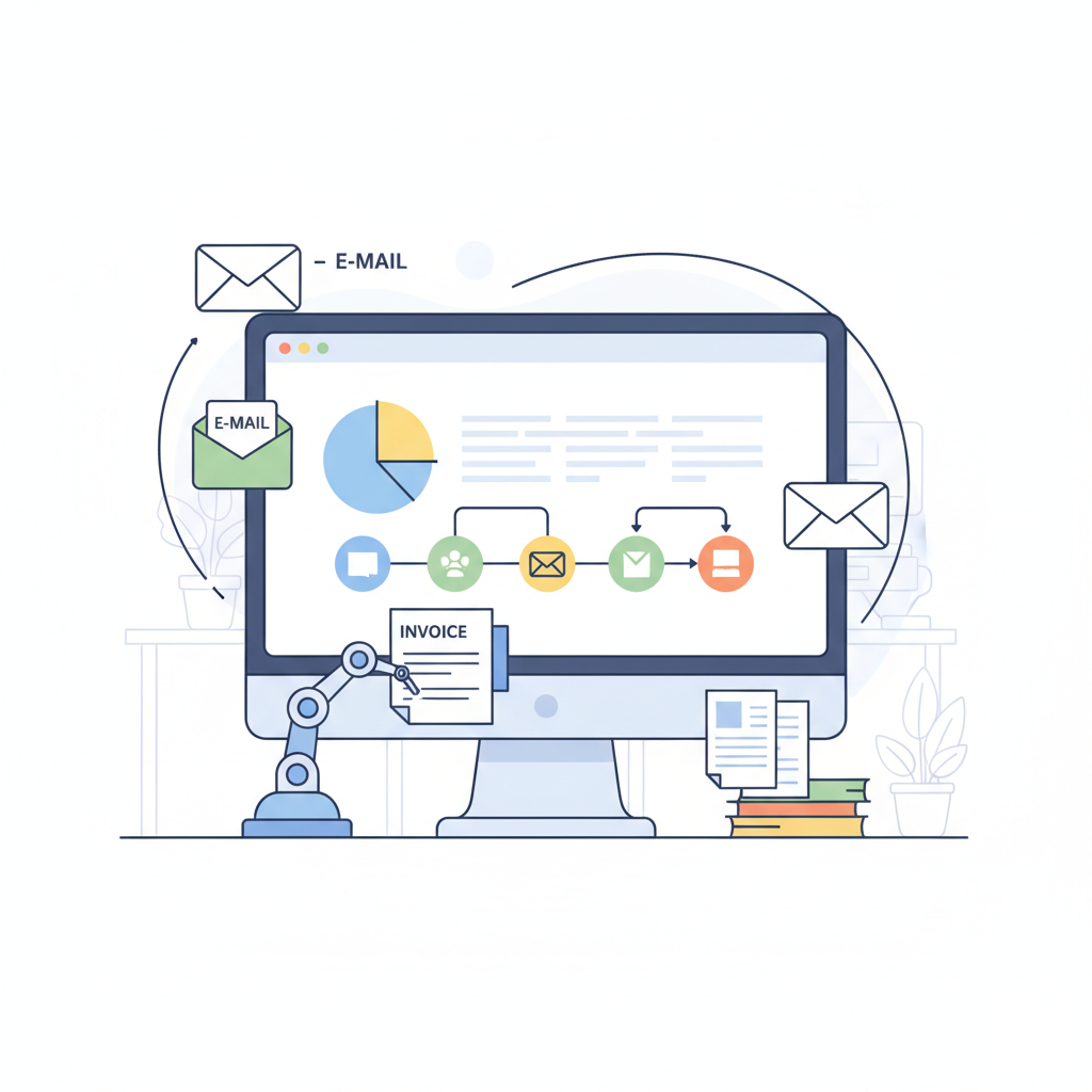 Die Herausforderung: Ein Unternehmen erhielt täglich Dutzende von Dokumenten (z.B. Eingangsrechnungen, Lieferscheine, Bestellungen) als PDF-Anhänge per E-Mail. Ein Mitarbeiter musste jede Datei manuell öffnen, die relevanten Daten (Kunde, Rechnungsnummer, Datum) identifizieren, die Datei nach einem starren Schema umbenennen (z.B.
